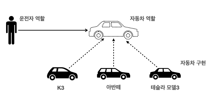 하지만 운전자가 자동차 역할에만 의존하게 된다면? 차종이 여러 번 바뀌어도 계속 운전할 수 있다.