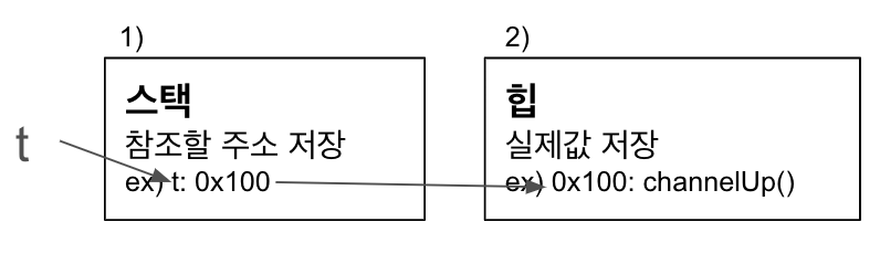 > 여기선 t가 스택에 참조할 주소를 저장한다.