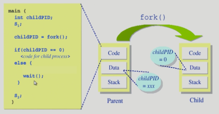 간단히 말하자면, 부모 프로세스를 자식 프로세스에 복제시키는 것이다. 이를 통해 자식 프로세스가 생성된다.