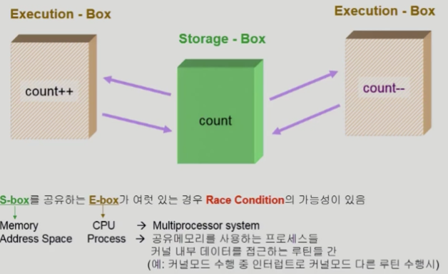 이렇게 실행과 저장 주체가 1 대 1의 관계가 아니라, 저장공간 1개를 공유하는 연산 주체가 2개 이상인 경우 문제가 발생할 수 있다.
