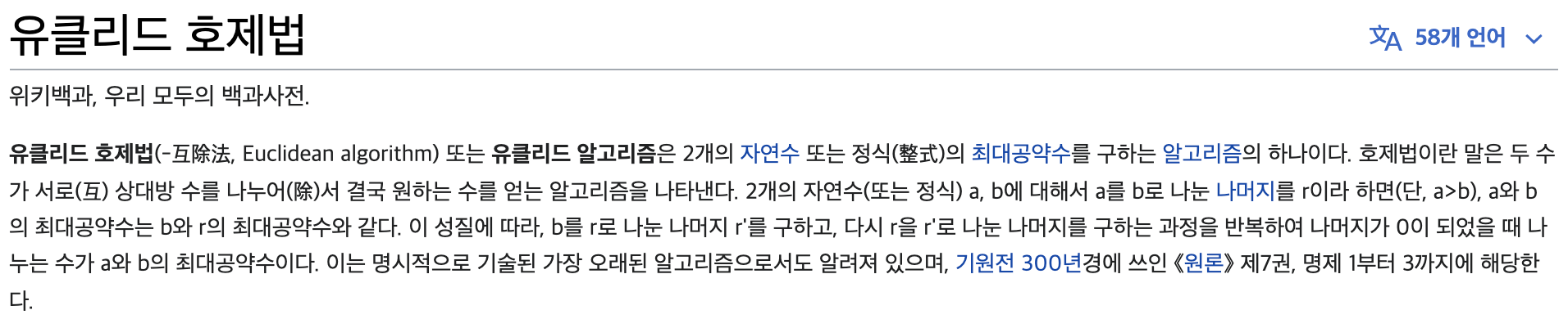 이는 두 수 a, b 간의 최대 공약수를 구하는 공식이다.
