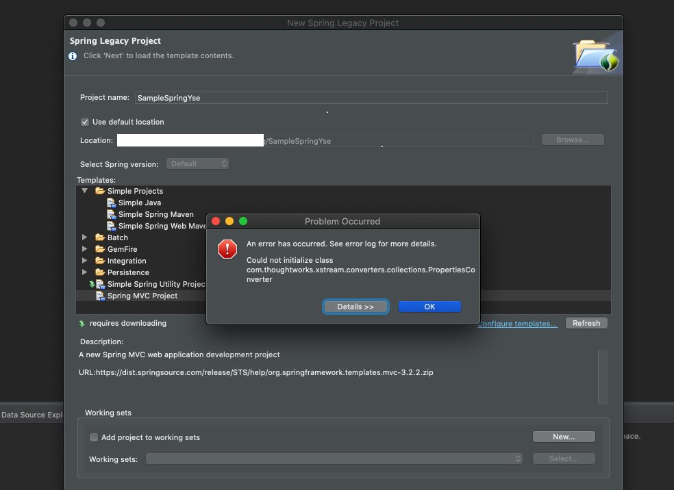 이클립스에서 스프링 MVC 프로젝트를 생성하려다가 에러가 발생했다.